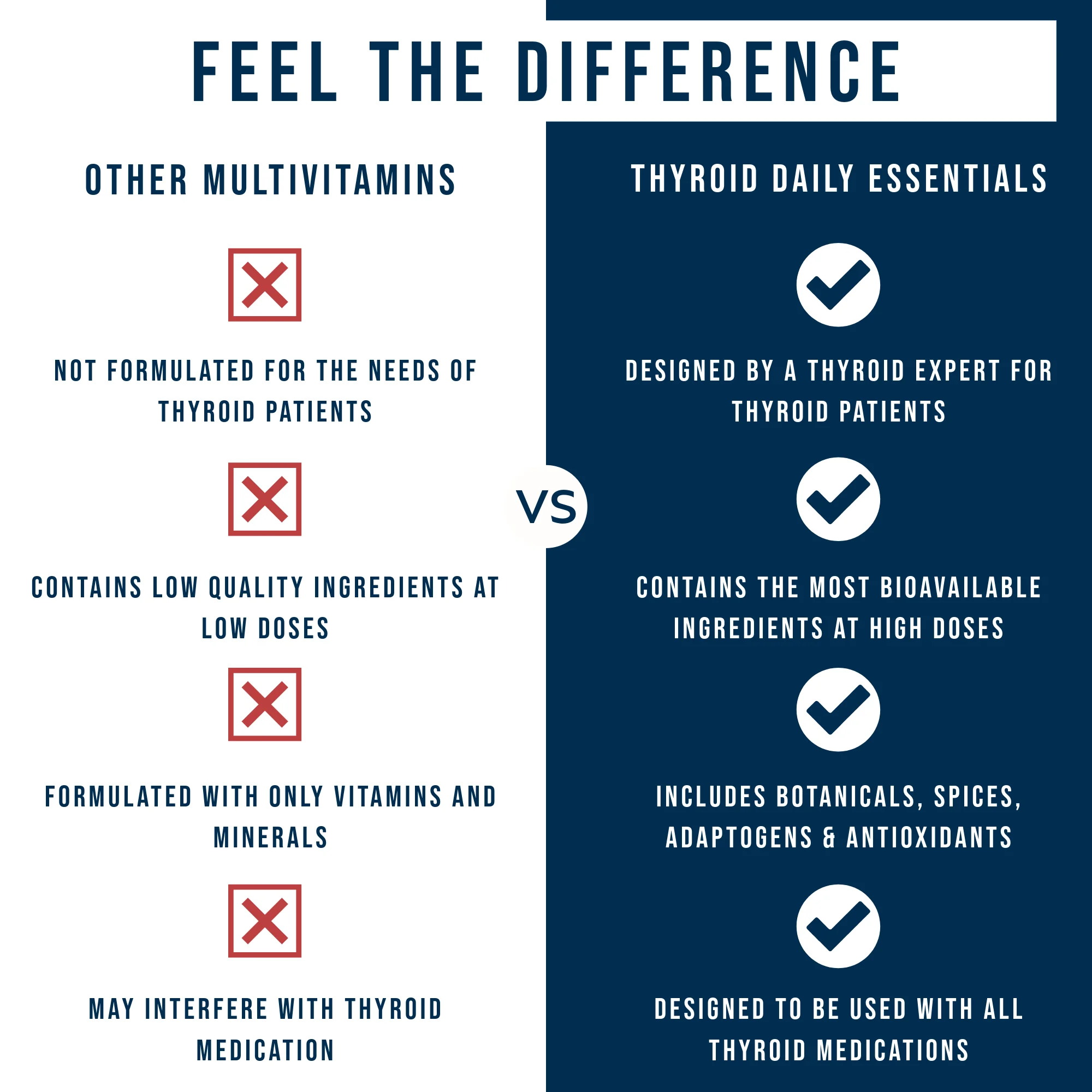 I formulated Thyroid Daily Essentials to be the best on the market, and that meant providing higher doses of ingredients found in standard multivitamins.